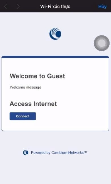 Khi kết nối WIFI trên thiết bị của bạn tự động hiện lên trang chào như trên là bạn đã hoàn thành toàn bộ quá trình tạo và gán WiFi Marketing Portal trên nền tảng Cambium Cloud (cnMaestro) sử dụng tính năng EasyPass, chúc các bạn thành công.
