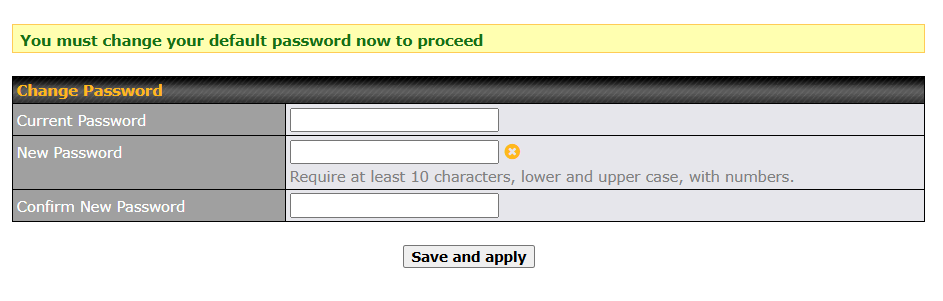 Thiết bị cân bằng tải Peplink có IP default là 192.168.1.1, các bạn truy cập giao diện web qua IP này và điền Username, Password đều là admin. Sau khi login thành công, thiết bị sẽ yêu cầu thay đổi Password, đây là yêu cầu bắt buộc , các bạn thay đổi mật khẩu mạnh, sau đó ấn Save and apply để đến bước tiếp theo.