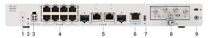 Về cổng kết nối, C8151-G2 có 2 cổng WAN dạng 1GE RJ45/SFP combo giúp linh hoạt uplink đồng hoặc quang, 2 cổng 1GE RJ45 dạng flex để gán linh hoạt theo kịch bản (chẳng hạn DMZ, mạng thiết bị đặc thù hoặc uplink nội bộ) và 6 cổng LAN 1GE RJ45 cho hệ thống thiết bị trong chi nhánh. Ngoài ra, router cũng có 1 cổng console RJ45 phục vụ cấu hình và bảo trì tại chỗ.